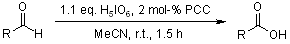 A straightforward and quantitative method for the preparation of carboxylic acids involves the oxidation of primary alcohols and aldehydes using pyridinium chlorochromate (PCC) as a catalyst at a concentration of 2 mol%. This process utilizes 2.2 equivalents of H5IO6 for the oxidation of primary alcohols and 1.1 equivalents for aldehydes, both in an acetonitrile solvent. The resulting carboxylic acids are obtained in high yield, demonstrating the effectiveness of this PCC-catalyzed oxidation approach.