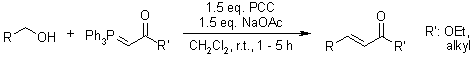 A domino oxidation process utilizing a combination of pyridinium chlorochromate (PCC) and sodium acetate (NaOAc), in conjunction with stabilized Wittig reagents, enables the efficient conversion of primary alcohols into α,β-unsaturated compounds. This method offers a streamlined approach to the synthesis of these valuable chemical intermediates.