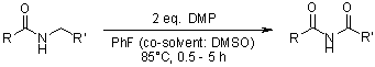 Among the reported instances of DMP, a hypervalent iodine reagent, exhibiting new reactivity are the processes of one-step oxidation of secondary amides to imides, N-acyl vinylogous carbamates, or ureas, as well as the direct oxidation of benzylic and related primary amines to their corresponding nitriles.