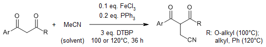 An effective approach allows for the production of α-cyanomethyl-β-dicarbonyls in high yields, starting from MeCN and straightforward 1,3-dicarbonyls. This process is hypothesized to operate through a radical mechanism.