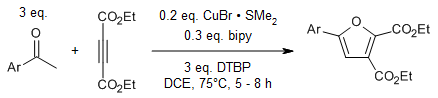 A synthesis of multisubstituted furans can be achieved using Copper(I) salts as catalysts, starting from readily accessible acetophenones and electron-deficient alkynes. This process involves direct C(sp3)-H bond functionalization under radical reaction conditions, with di-tert-butyl peroxide serving as an external oxidant. This method provides an efficient route to biologically significant scaffolds from simple precursors.