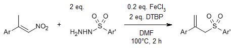 Regiospecific radical reactions of β-alkyl nitroalkenes with sulfonyl hydrazides provide allyl sulfones with high regioselectivity in the presence of dimethylformamide (DMF), whereas reactions in acetonitrile provide vinyl sulfones.