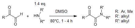 A dimethyl sulfoxide (DMSO)-promoted oxidative amidation reaction between 2-oxoaldehydes and amines under metal-free conditions enables an efficient synthesis of α-ketoamides. Mechanistic studies supported an iminium ion intermediate that reacts with DMSO to provide the C1-oxygen atom of the product.