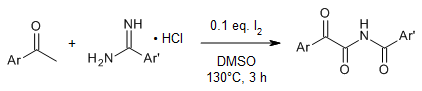 An iodine-catalyzed oxidative C-H/N-H cross-coupling enables an efficient construction of α-ketoimides in good to excellent yields from methyl ketones and benzamidines hydrochloride under metal-free and peroxide-free conditions.