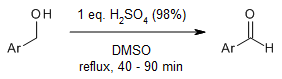 The use of DMSO in the presence of H2SO4 enables an efficient metal-free oxidation of benzylic alcohols to aromatic aldehydes in excellent yields. This oxidation proceeds in short reaction time without side products.