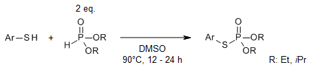 A convenient reaction of thiols with H-dialkyl phosphites in the presence of DMSO as both solvent and oxidant provides various phosphorothioates under transition-metal-free conditions. The reaction proceeds with formation of a disulfide intermediate followed by nucleophilic substitution with the dialkyl phosphite.