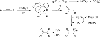 Oxidation of alkynes to α-dicarbonyl derivatives through a convenient one-pot procedure via a Brønsted acid-promoted "hydration" and a DMSO-based oxidation sequence has been achieved in high yields.