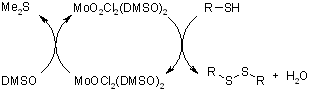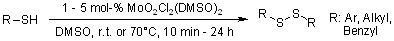 Selective and quantitative conversion of thiols to disulfides was effected by dimethyl sulfoxide under mild conditions catalyzed by dichlorodioxomolybdenum(VI).