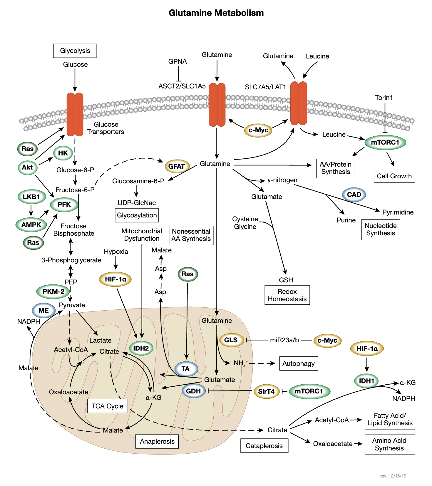 The amino acid glutamine is an important metabolic fuel for rapidly proliferating cells.