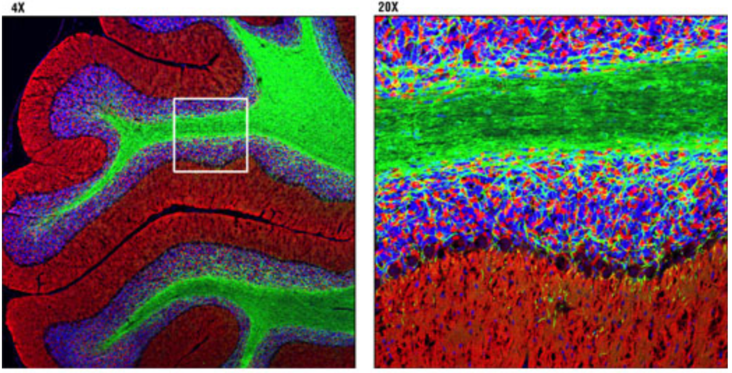 Figure.6 CNPase (green) and α/β sheathing green protein (Syn205) (red) IF