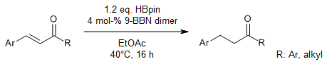 Organoborane reductants have been made catalytic through isodesmic B-O/B-H transborylation, applied in borane-catalyzed, chemoselective alkene reduction and formal hydrofunctionalization of enones. The reaction proceeds via a 1,4-hydroboration of the enone and B-O/B-H transborylation with HBpin, enabling catalyst turnover.