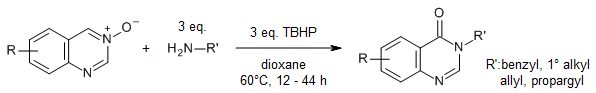 An efficient and facile reaction of quinazoline-3-oxides with primary amines provides a broad range of quinazolin-4(3H)-ones under metal-free and mild reaction conditions employing tert-butyl hydroperoxide as the oxidant. Remarkably, a precursor for the synthesis of bioactive evodiamine and rutaempine was conveniently obtained in good yield.