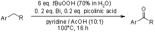 The bismuth and picolinic acid-catalyzed oxidation of alkyl arenes with tert-butyl hydroperoxide in pyridine and acetic acid gave benzylic ketones in good yields. Alternatively, oxidation of methyl arenes gave the corresponding substituted benzoic acids. A radical mechanism is discussed.