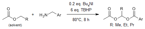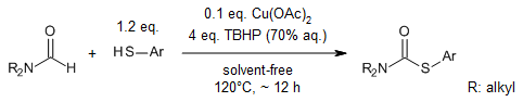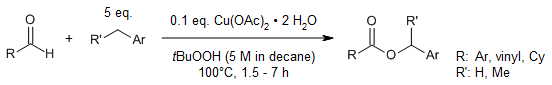 Copper(II) catalyzes a cross dehydrogenative coupling (CDC) reaction of aldehydes with alkylbenzenes in the presence of TBHP to yield benzylic esters.