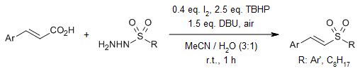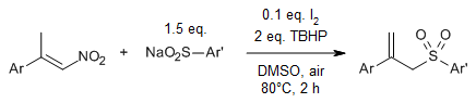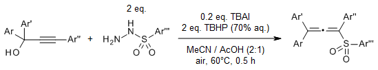 A TBHP/TBAI-mediated reaction of propargyl alcohols with sulfonyl hydrazides in the presence of HOAc provides allenyl sulfones in good yields in a short reaction time via HOAc-promoted sulfonohydrazide intermediate formation, sequential C-O, C-N, and N-S bond cleavage, and C-S bond formation. This reaction shows highly functional group compatibility and excellent regioselectivity.