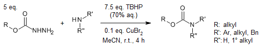 A copper-catalyzed cross-coupling reaction of amines with alkoxycarbonyl radicals generated from carbazates provides carbamates under mild conditions. This environmentally friendly approach is compatible with a wide range of amines, including aromatic/aliphatic and primary/secondary substrates.
