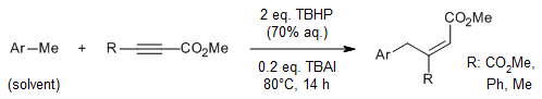 An sp3 C-H bond-transformation reaction of methylarenes provides the corresponding allylbenzene derivatives in good yields in the presence of tetrabutylammonium iodide and tert-butyl hydroperoxide at 80 °C.