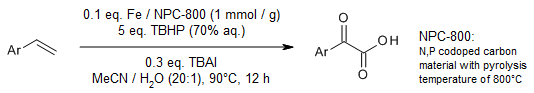 A recyclable, bifunctional iron nanocomposite catalyzes an efficient synthesis of α-keto acids via oxidation of alkenes using TBHP as oxidant. A variety of alkenes with different functional groups were smoothly oxidized into their corresponding α-keto acids in good yields.