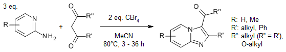 A carbon tetrabromide mediated oxidative carbon-nitrogen bond formation of 2-aminopyridines or 2-aminopyrimidines with β-keto esters or 1,3-diones provides substituted imidazo[1,2-α]pyridines or imidazo[1,2-α]pyrimidines under mild and metal-free conditions.