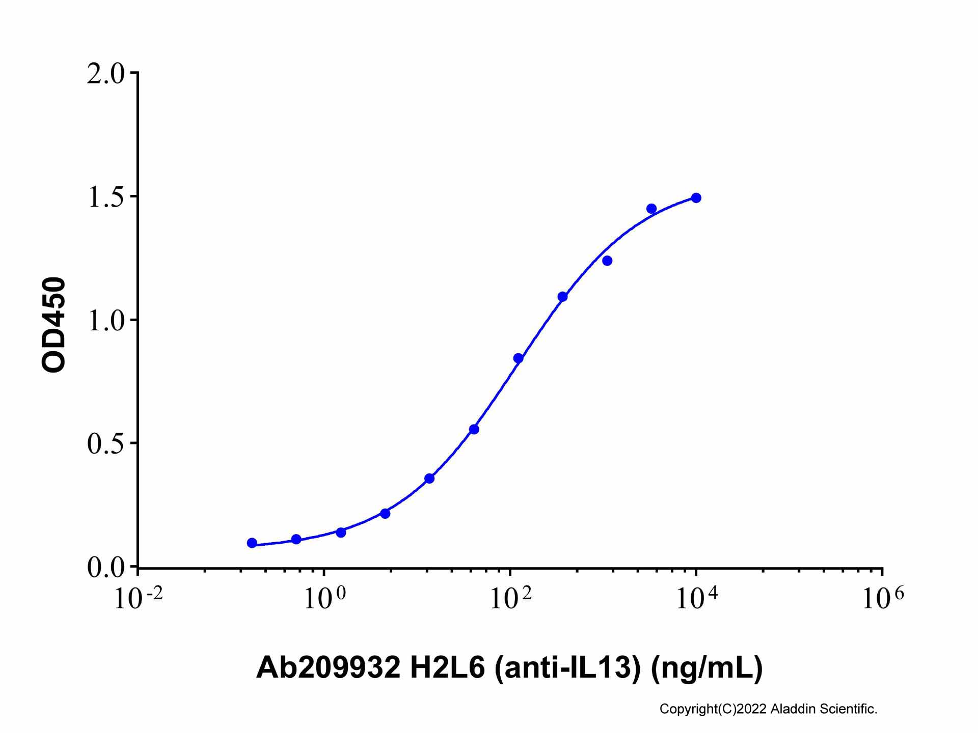 Immobilized Recombinant Human IL-13 protein (rp169622) at 5.0 μg/mL can bind H2L6 (anti-IL13) (Ab209932) with the EC₅₀ of 121.9 ng/mL.