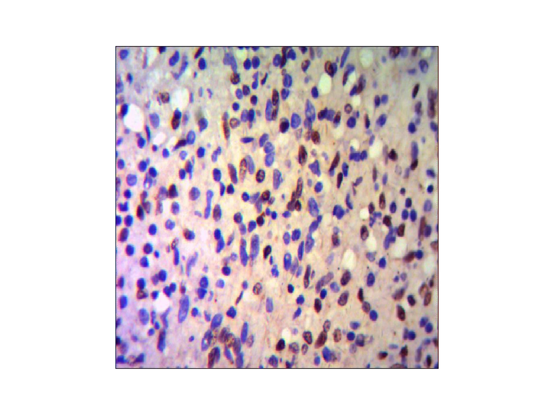 Immunohistochemistry analysis of paraffin-embedded Human Spleen using KAP1 Mouse mAb (Ab111687). High-pressure and temperature Sodium Citrate pH 6.0 was used for antigen retrieval.