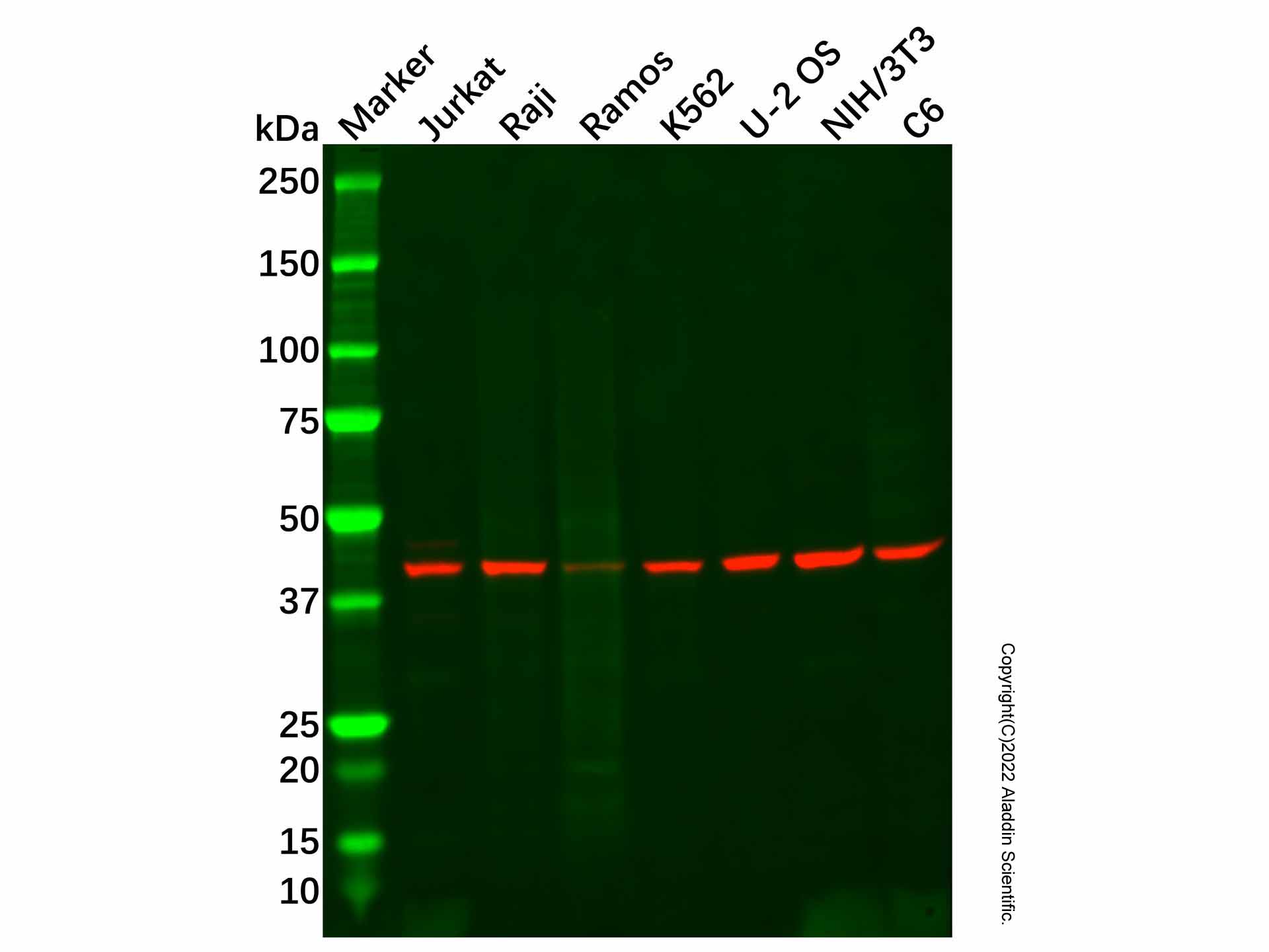| Positive Control | WB: Jurkat, Raji, Ramos, K562, U-2 OS, NIH/3T3 and C6 cell lysates. IHC: Human tonsil tissue. | |||||