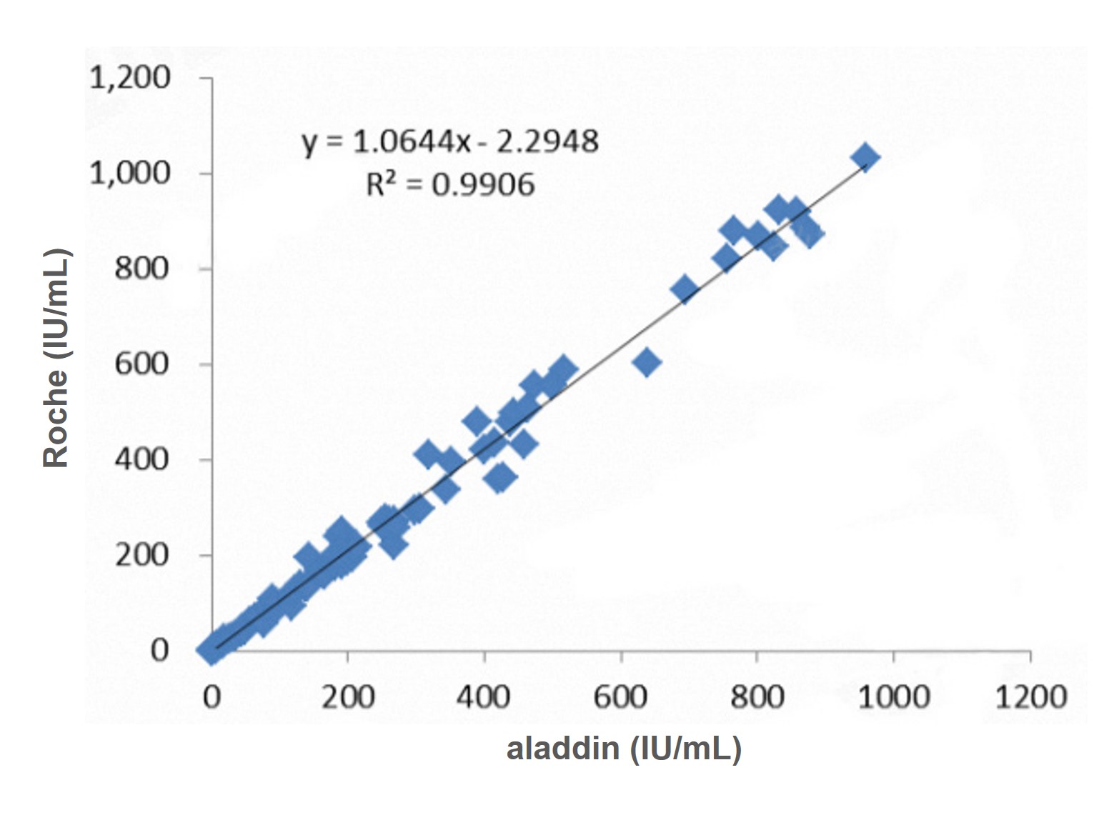 Relevance of detection results between aladdin Antibody Pair (Ab007317 & Ab007318) and Roche in CLIA