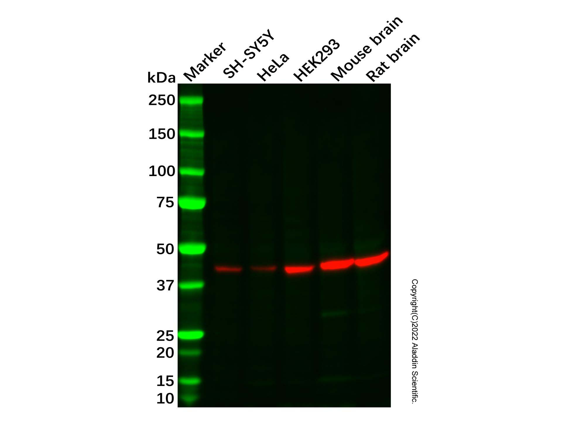 | Positive Control | WB: Mouse brain, Rat brain, SH-SY5Y, HeLa and HEK293 lysates. |