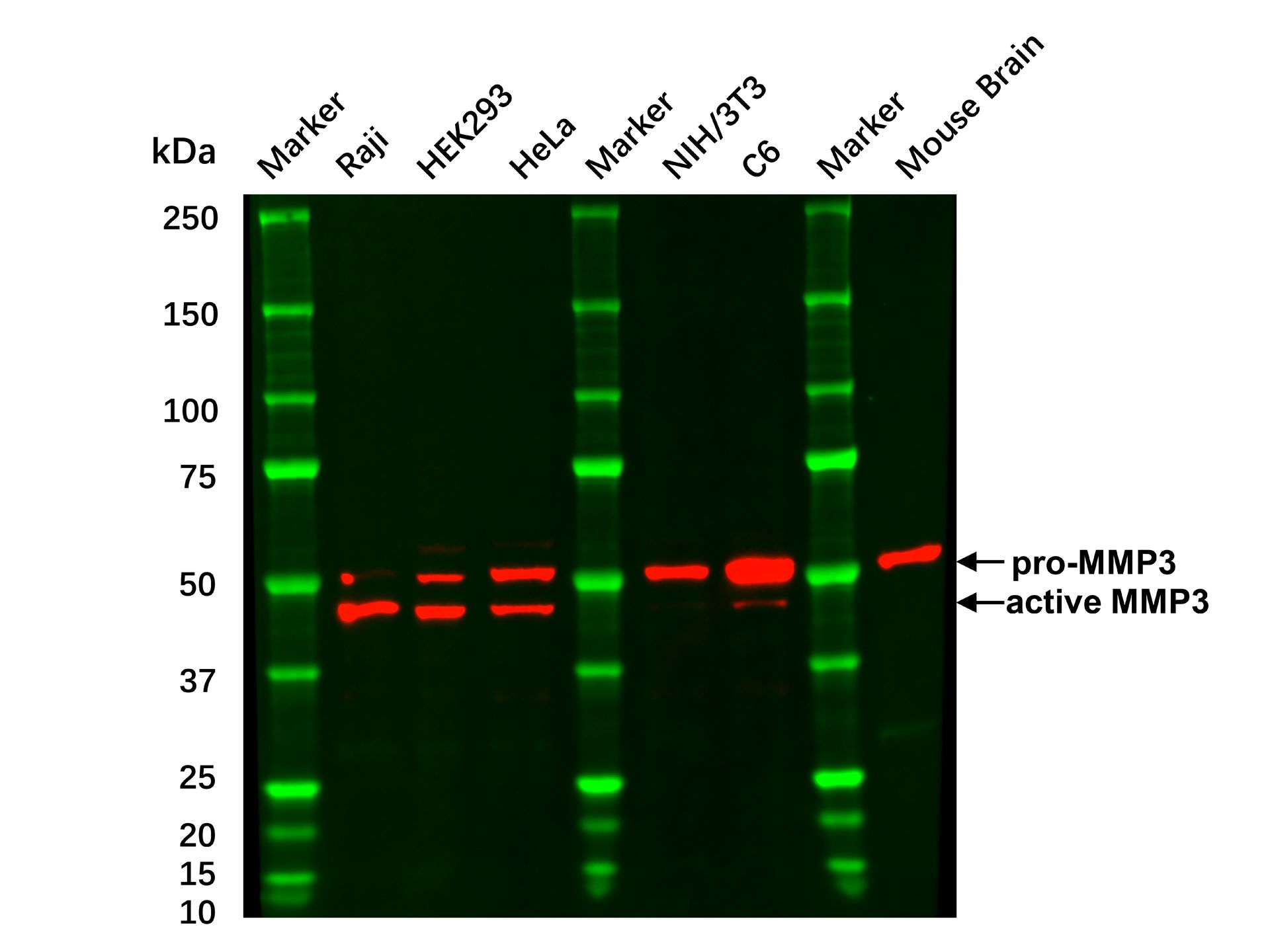 Recombinant antibody to MMP3, could be used for WB, IHC and so on. |