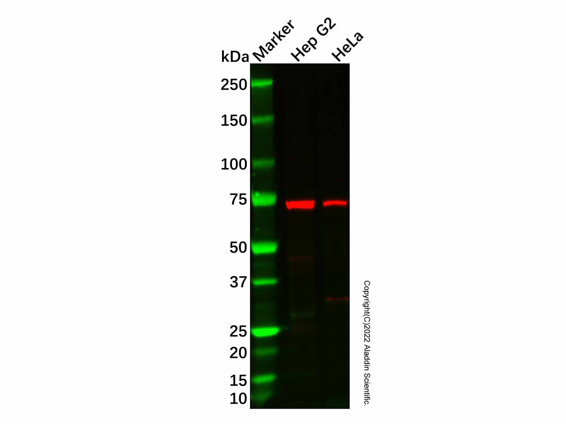Observed band size: 74 kDa