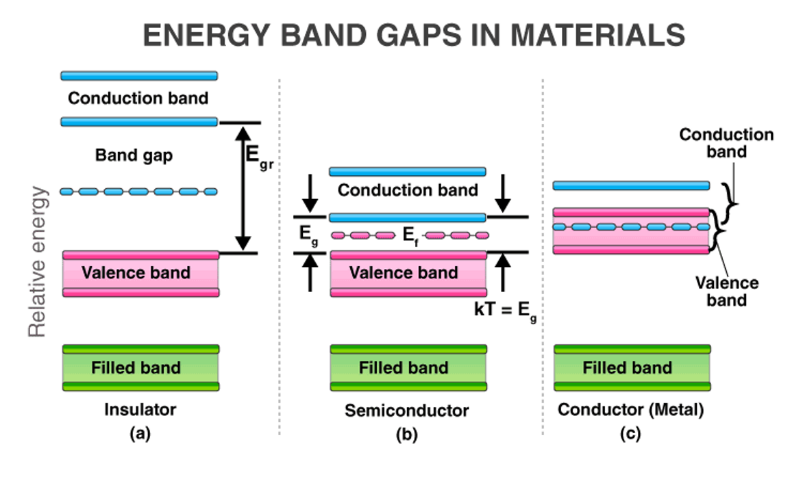 图1:半导体、导体和绝缘体能带图