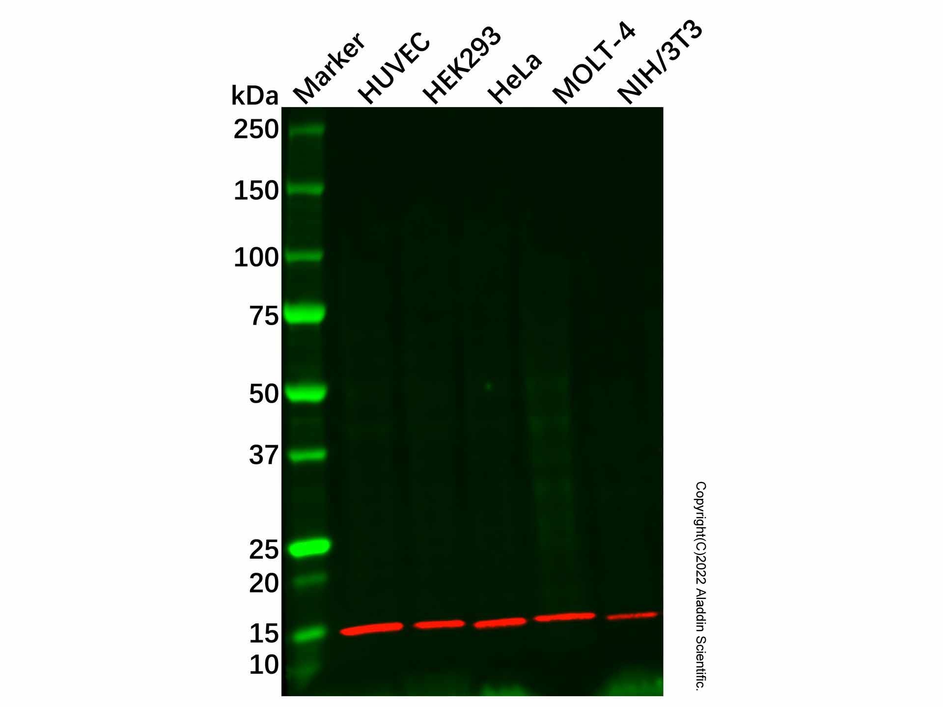 | Positive Control | WB: HUVEC, HEK293, HeLa, MOLT-4 and NIH/3T3 cell lysates. |